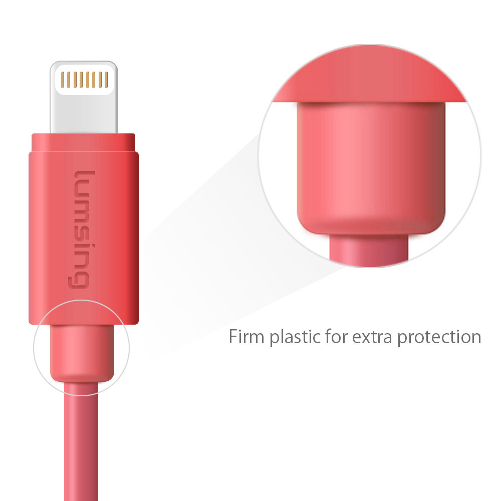 [Apple MFi Certified] Lumsing sync charging cable(MFI lightning 8-pin 9.9 feet)3M -Pink